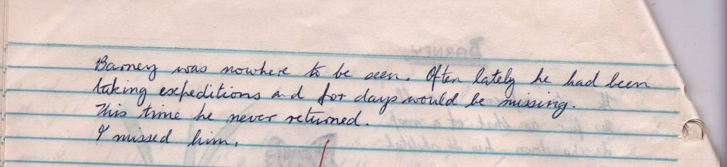 I escaped out the back door and down the gravel driveway. The street spanned before me, begging adventure. Sunday lawns green, pungent with fresh Saturday clippings piled behind an assortment of fences.